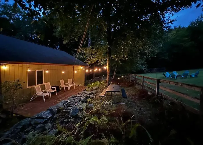 Spacious Catskills Home With Covered Hot Tub is located 14 minutes on foot from Swinging Bridge Lake Marina and invites guests to enjoy a terrace. The 3-bedroom villa offers guests a relaxing experience with a Jacuzzi.